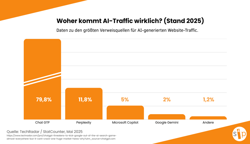 Google war lange der unangefochtene Platzhirsch im Search-Bereich. Doch das verändert sich rasant. Immer mehr Nutzer*innen holen sich Informationen nicht mehr klassisch über eine Google-Suche, sondern direkt über AI-basierte Systeme wie Chat GPT, Microsoft Copilot oder Perplexity. Diese Systeme greifen zunehmend auf den Bing-Index zurück – nicht auf Google.